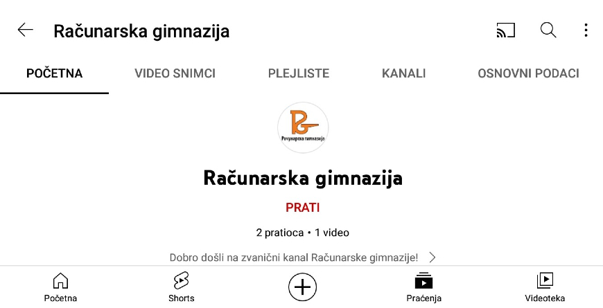 Позивамо вас да запратите наш YouTube канал Рачунарска гимназија и будете у току садржајима који ће бити објављивани.