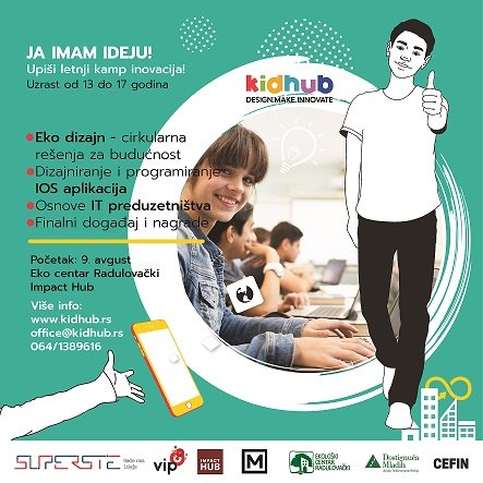 “ Ја имам идеју“ назив је летњег кампа иновација и ИТ предузетништва за децу у организацији дечјег креативног hub-a KIDHUB, а одржаће се од 9. до 31. августа. У једном од тимова који је победио на такмичењу „Girls in IT“ и самим тим стекао право да учествује на овом кампу су две ученице Рачунарске гимназије. Позивамо све младе од 13 до 17 година да нам се придруже ако „имају идеју“.